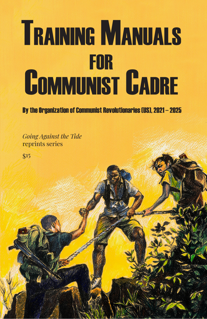 The following training manuals were written by the leadership of the Organization of Communist Revolutionaries (US) from 2021 to 2025. They synthesize lessons from the OCR’s collective practice and the broader experience of the communist tradition. Their purpose is to to train up the next generation of communist cadre in the skills, methods, and critical thinking required to develop the proletarian class-consciousness, fighting capacity, and organization of the masses and build the subjective forces for revolution. The manuals on agitation and summation were first published in the journal kites, while the rest of the content in this volume first appeared in print in the journal Going Against the Tide. All content in this volume is available in the library section of goingagainstthetide.org. Two items in this volume—“Correcting an over-correction” and “Notes on our work among the proletariat”—are not, formally speaking, training manuals, but they serve a similar purpose and are part of the developing strategic thinking of the Organization of Communist Revolutionaries. Before diving into these training manuals, we recommend you study the Manifesto of the Organization of Communist Revolutionaries, published in 2020, for an introduction to the OCR’s objectives and strategy. Welcome to the challenges, responsibilities, and joys of dedicating our lives to communist revolution.