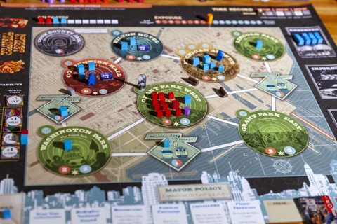 As games go, the interplay between these factions has all the tenderness of a skinned knee. Other titles — I’m thinking of Bloc by Bloc here — have sometimes relied on hidden roles to amplify the uncertainty. There’s no need for that here. As the demonstrators, your goal is to either pressure the Convention to nominate McCarthy or swing the media exposure in your favor. Either will suffice. Within those objectives, however, there’s plenty of room to differ on the best course of action. The same goes for the Mayor and the Chicago Police, albeit to a lesser degree. More than once, we’ve watched as the Police were so heavy-handed that they bled the Mayor’s political capital dry.