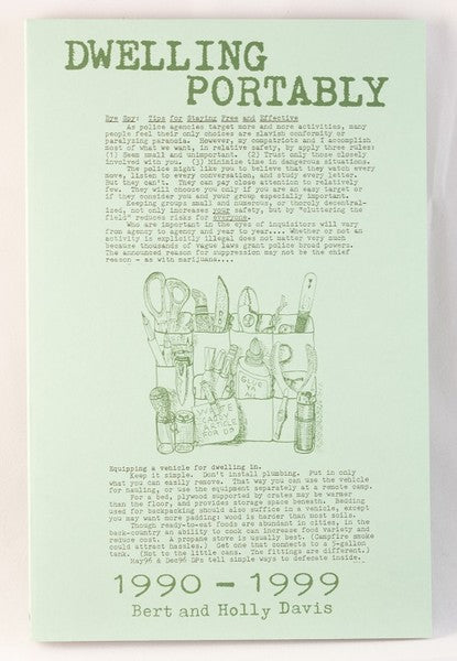 "For the past 30 years, Bert and Holly have been cranking this out on a manual typewriter in their yurt. You'll find diagrams and notes on how to make tools, portable showers, find seasonal jobs, stay warm at night while Winter camping; hitchhiking and freight train hopping guides; suggestions from people who live in their car, in tents, yurts, tipis, or nowhere at all. And perhaps my favorite thing about "Dwelling Portably" are the personal stories that surround the helpful information." -Print Fetish