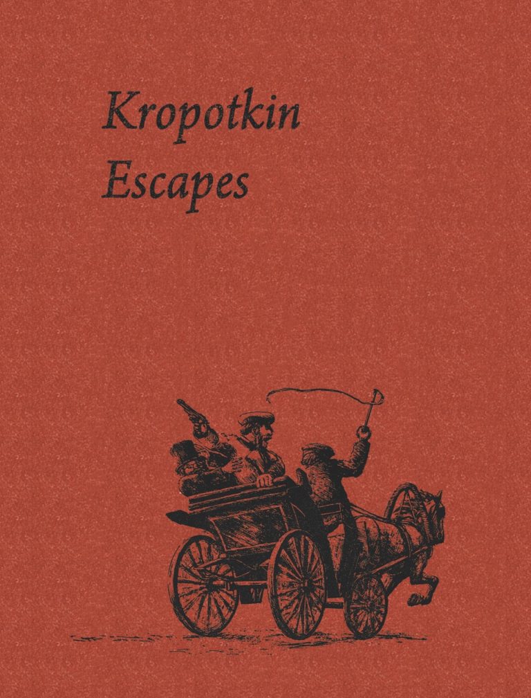 In 1876, after spending two years in a Russian prison, Peter Kropotkin made a daring escape to freedom, with the assistance of some friends and a horse named Barbarian. Kropotkin told the story of his flight from capture in his autobiography Memoirs of a Revolutionist. In 1987, World’s End Press published a small edition of this tale, beautifully illustrated by Julian Watson. Recently Detritus Books in American published a pocket book version and here is our own A6 edition. Proceeds from the sale of this booklet will go to help fund the Disgraca project in Lisbon.